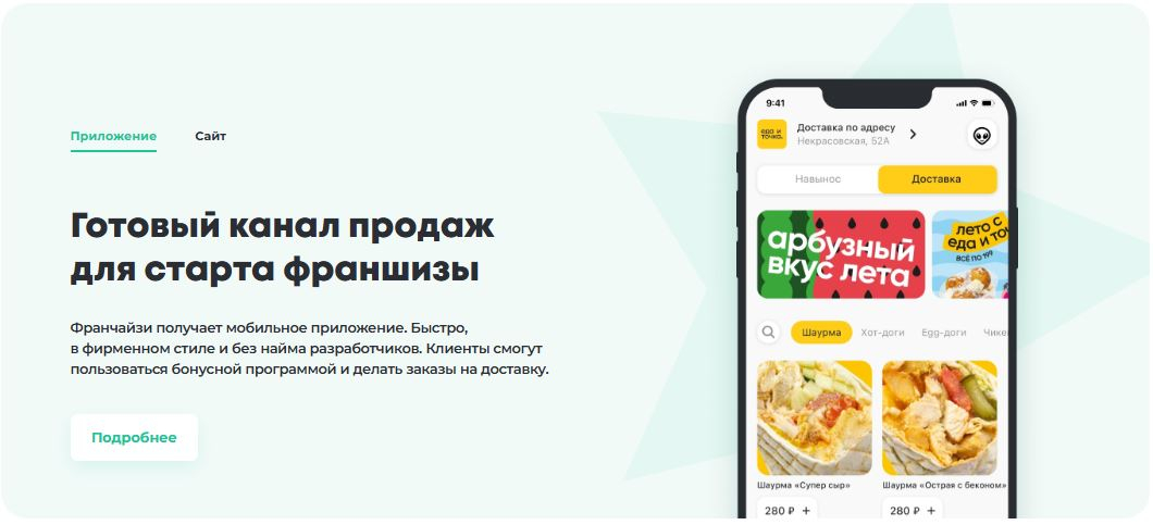 У франшизы есть возможность запустить единый канал продаж для всех точек — мобильное приложение. С этим поможет Quick Resto: фирменный стиль, бонусная программа и доставка в одном месте.
