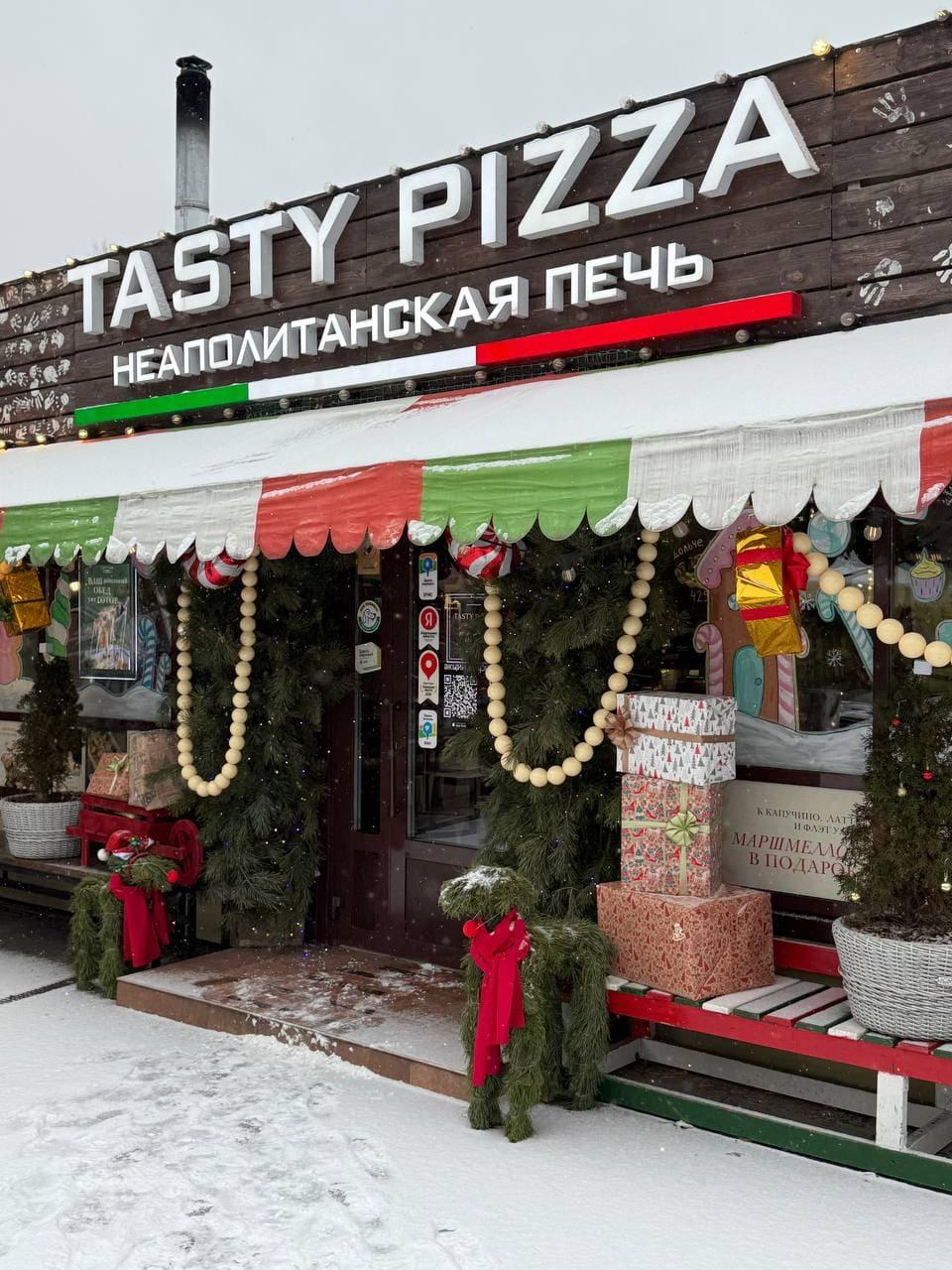 Неаполитанская пицца в Tasty Pizza готовится из теста с высокой влажностью и длительной ферментацией — более суток. В печи она выпекается всего 1–1,5 минуты, что позволяет сочетать качество и быструю отдачу.